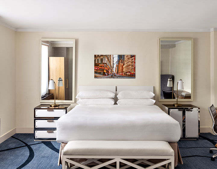 In the city that never sleeps, our guests do – luxuriously. With rooms that create a cocoon of quiet from New York's electric energy outside, we've got you covered – and with the softest of sheets, no less. Color, comfort and a sense of fun pervade our décor, while amenities like an honor bar and luxury amenities let you feel indulged.